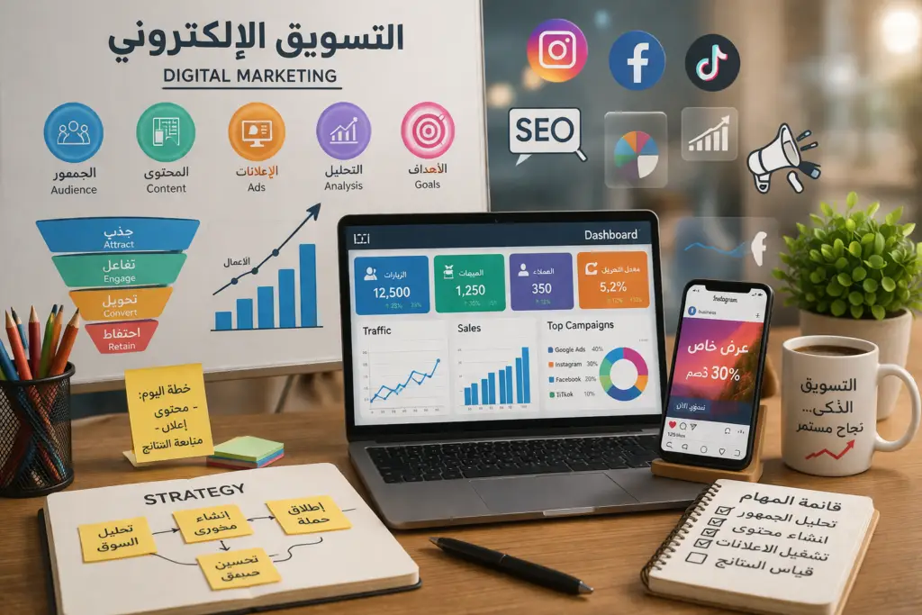 مع خدمات التسويق الإلكتروني التي تساعد على انتشار نشاطك وزيادة العملاء ورفع نجاح عملك في العالم الرقمي.